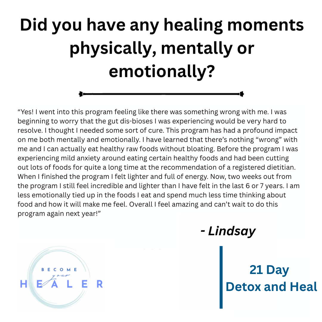 I am thrilled to announce that the 21 Day Detox and Heal Program is now more accessible than ever before! After listening to your feedback and working tirelessly behind the scenes, I have transformed my group program into a fully automated experience that you can embark on from the comfort of your own home, at your own pace.